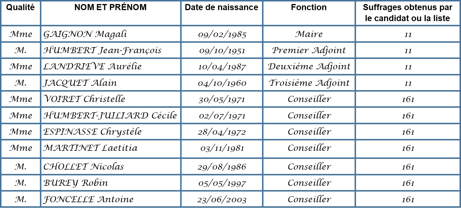 NOM ET PRÉNOM DES ÉLUS