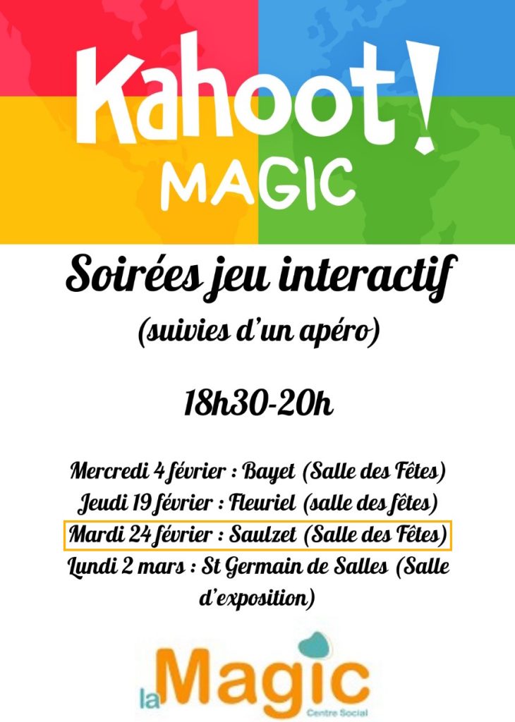 Moment convivial à travers un jeu Kahoot interactif sur smartphone ( quizz et QCM) afin de tester les connaissances sur les actions et service de la Magic. Un moment de partage suivi d’un apéro.